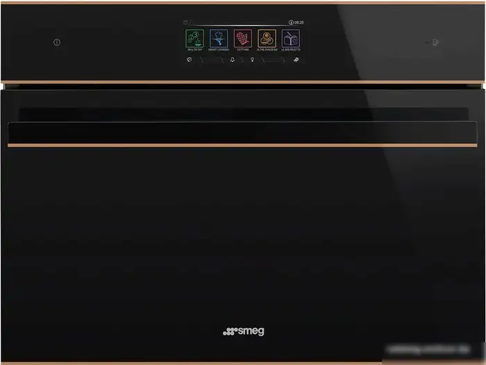 Электрический духовой шкаф Smeg Dolce Stil Novo SO4606WM2PNR выполнен в стильном черном цвете и обладает объёмом 40 литров. Управление происходит через сенсорный ЖК-экран, что делает использование удобным и простым. В шкаф встроены функции конвекции и микроволн, что позволяет быстро и равномерно готовить блюда. Он оснащён 25 режимами работы, включая нижний нагрев, гриль, вентилятор, а также автоматические программы для удобства. Благодаря системе плавного закрывания дверцы и блокировке от детей, использование становится безопаснее. Среди дополнительных функций — таймер, отложенный старт, освещение и поддержание температуры, что расширяет возможности приготовления. Шкаф легко очищается с помощью паровой системы, а телескопические направляющие позволяют удобно доставать посуду. Устройство снабжено стандартными противнями и решёткой, а благодаря компактным размерам подходит для встраивания в кухонный гарнитур.