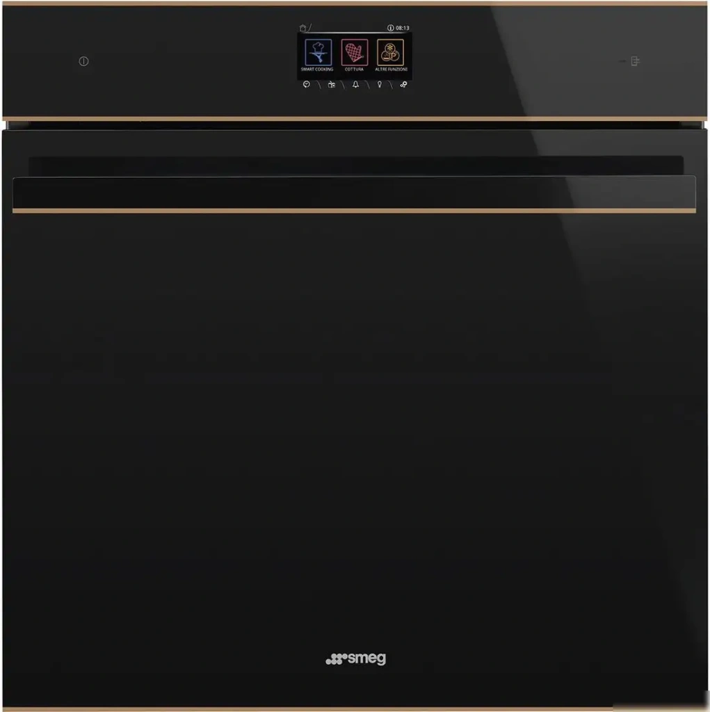Электрический духовой шкаф Smeg SO6604M2PNR изготовлен в Италии и отлично подходит для домашнего использования. Он имеет большой объем 68 литров, что позволяет готовить большие порции и несколько блюд одновременно. Управляется через цветной ЖК-дисплей, где легко выбрать нужную программу или режим. Шкаф оснащен 20 разными режимами работы, включая гриль, конвекцию, размораживание и подготовку пиццы. Устройство поддерживает автоматические программы и предлагает дополнительные функции, такие как таймер, блокировка от детей и плавное закрывание двери. Внутри есть телескопические направляющие и два противня для удобства приготовления. Мощность гриля — 1750 Вт, микроволн — 900 Вт, что ускоряет процесс готовки. Благодаря паровой очистке и качественной теплоизоляции, поддерживается чистота внутри и безопасность эксплуатации. Шкаф имеет стильный медный и черный цвета, а также компактен для встроенного монтажа.