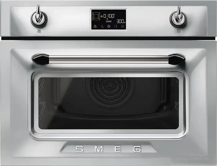 Электрический духовной шкаф Smeg Victoria SO4902M1X выполнен из нержавеющей стали и обладает объёмом 40 литров. Он управляется электронным способом и не имеет ЖК-экрана. В шкаф встроены функции конвекции,гриль мощностью 1 750 Вт, микроволны 800 Вт и паровая очистка для удобства очистки. Устройство поддерживает 18 режимов работы, включая нижний нагрев, вентиляцию, размораживание и подготовку теста, что помогает готовить разнообразные блюда. Функции таймера и блокировки от детей делают работу с ним безопасной и удобной. Шкаф оснащён плавным закрыванием дверцы, внутренним освещением и 3-слойной стеклянной дверью. Размеры позволяют встроить его в кухонный гарнитур 56 см шириной. В комплекте есть противень и решётка. Это устройство подходит для тех, кто ценит простоту использования и многофункциональность в домашней кухне.