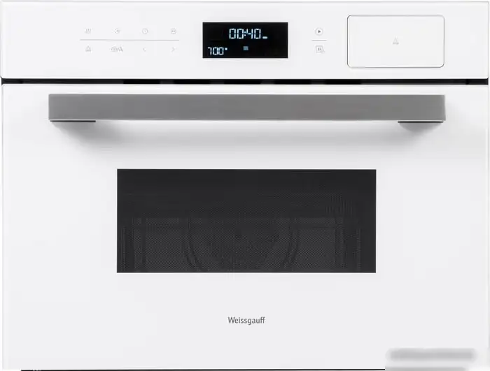 Электрический духовой шкаф Weissgauff OEMS 459 PDW принимает питание на 4 500 Вт и имеет объём 34 литра, что подходит для ежедневной готовки. Он управляется сенсорным экраном с подсветкой и оснащён 7 режимами работы, включая конвекцию, гриль, микроволны и их сочетания. Модель позволяет готовить на пару, поддерживать температуру и быстро разогревать блюда, используя мощность микроволн 900 Вт. Шкаф оснащён таймером с отсрочкой запуска и звуковым сигналом для удобства. Для безопасности есть блокировка от детей, а двери со смотым закрытием позволяют легко открывать и закрывать духовку. Внутренние поверхности легко очищать вручную, а наличие стандартного противня и решетки делает приготовление проще. Максимальная температура достигает 230°C, что позволяет готовить разнообразные блюда. Компактные размеры позволяют легко разместить устройство в кухне без лишних хлопот.