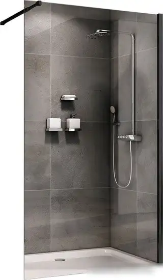 Душевая стенка Abber Immer Offen AG61100B8 — удобное решение для вашей ванной комнаты. Она сделана из прочного закаленного стекла толщиной 8 мм, что обеспечивает безопасность и долговечность. Стенка устанавливается прямо на стене и имеет размеры 101х200 см, занимает мало места, но создает просторную душевую зону. Благодаря простому дизайну с прозрачными дверями и черными профилями, она отлично впишется в любой интерьер. В комплект не входит смеситель и душ, поэтому вы можете выбрать оборудование по своему вкусу. Вес стенки 34 кг, она легко монтируется и служит надежной защитой от воды.