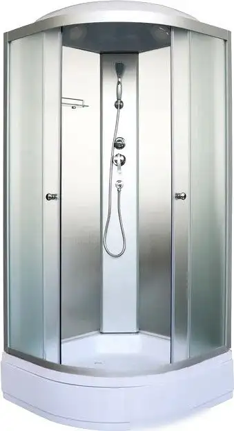 Душевая кабина Grossberg PB 91 подходит для установки в угол и оснащена закаленным стеклом толщиной 4 мм. Она имеет раздвижные двери, что экономит место в ванной комнате, и низкий закругленный поддон высотой 26 см для комфортного входа. В кабине есть смеситель, верхний тропический душ и ручной душев máximo для приятного принятия воды. Полки внутри позволяют удобно разместить личные вещи и средства для ухода. Размеры кабины 90×90 см и высота 215 см делают её компактной и вместительной. Вес конструкции — 65 кг, что обеспечивает прочность и надежность. Кабина не оснащена функциями парогенератора, массажной системы или подсветки, но её простая конструкция легко чистится и обслуживается.