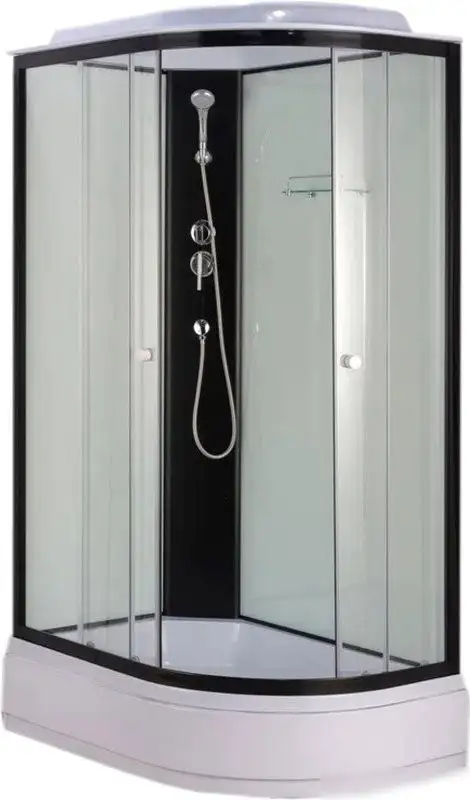 Душевая кабина Grossberg TM 612 L подходит для установки в угол и занимает небольшую площадь. Она выполнена из стекла толщиной 4 мм с раздвижными дверями и черным профилем, что делает её современно выглядящей. В кабине есть удобный низкий закругленный поддон высотой 26 см и глубиной 13 см, обеспечивающий комфорт при использовании. Внутри расположены полки для хранения и смеситель для удобства. Кабина оснащена верхним душем с функцией тропического ливня и ручным душем, что позволяет выбрать наиболее приятный режим. Вентиляция обеспечит свежесть внутри, а возможность подключения аудиоплеера добавит комфорт во время использования. Простая сборка и качественные материалы гарантируют долговечность и удобство в уходе. Весь дизайн выполнен в стильном черном цвете, вписывающемся в современную ванную комнату.