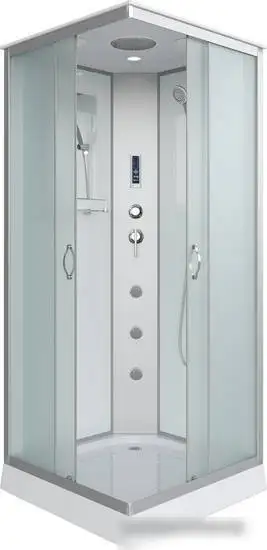 Душевая кабина Niagara NG-1101-14F имеет размеры 90х90 см и предназначена для одного человека. Она выполнена из закаленного стекла толщиной 4 мм, что обеспечивает прочность и безопасность. В кабине есть гидромассажная система с боковыми форсунками, которая помогает расслабиться и снять усталость. Встроенный верхний (тропический) и ручной душ дают возможность выбрать наиболее комфортный режим. Модель оснащена вентиляцией, освещением и радио для вашего удобства. Кабина оборудована зеркалом, полками и дисплеем, что делает использование приятным и удобным. Низкий квадратный поддон высотой 13 см обеспечивает легкий вход и безопасность. Цвет профилей — серебристый, стекла — матовые, что создает современный привлекательный внешний вид. Простая установка без необходимости монтажных работ делает эту душевую кабину хорошим выбором для любого жилья.