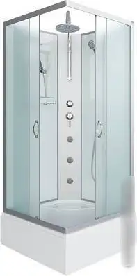 Душевая кабина Niagara NG-1108-14BKTG предназначена для одного человека и не требует монтажа, так как представляет собой закрытый бокс с раздвижными дверями из закаленного стекла толщиной 4 мм. Она оснащена гидромассажной системой, которая включает боковые форсунки и верхний тропический душ для комфортного принятия водных процедур. Высокий квадратный поддон высотой 30 см легко очищается и предотвращает протечки, а противоскользящее покрытие обеспечивает безопасность. Кабина имеет встроенные полки и зеркало для удобства, а смеситель и ручной душ позволяют регулировать воду по желаниям. Размеры кабины — 90x90 см, высота — 200 см, вес — 66,5 кг, что делает её удобной для установки в большинстве ванных комнат. Стеклянные элементы в матовом цвете создают современный и стильный внешний вид. Простая в использовании и уходе, эта кабина сочетает комфорт и безопасность в ежедневной гигиене.
