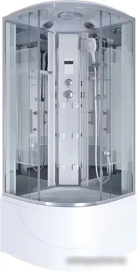 Душевая кабина Niagara NG-708-01 имеет размер 90x90 см и высоту 220 см, она легко устанавливается в угол комнаты. Стенки сделаны из прочного закаленного стекла толщиной 5 мм с раздвижными дверями, что экономит место и удобно в использовании. В кабине есть гидромассаж и верхний тропический душ, создающие приятный водный массаж и расслабление. Встроено зеркало, полки для средств, подсветка и радио для комфорта во время принятия душа. Высокий поддон (48 см) имеет удобную округлую форму и противоскользящее покрытие для безопасности. Кабина управляется с помощью пульта дистанционного управления, что делает её использование простым и удобным.