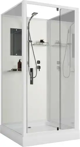 Душевая кабина Niagara ST90/15Q/BK выполнена из прочного закаленного стекла и алюминия. Она легко монтируется на стену и имеет дверь с распашным механизмом шириной 55,8 см. В кабине установлен низкий квадратный поддон высотой 15 см, что обеспечивает комфорт при входе. Основные функции — механический смеситель и ручной душ, которые позволяют удобно настраивать воду. Внутри есть зеркало и полки для хранения личных вещей. Оборудование кабины не включает парогенератор или массажные системы, но обладает противоскользящим покрытием пола для безопасности. Размеры кабины составляют 200 см в высоту, 90 см в ширину и глубину, а вес — 74 кг. Кабина подходит для тех, кто ищет компактное и надежное решение для душа без лишних функций.