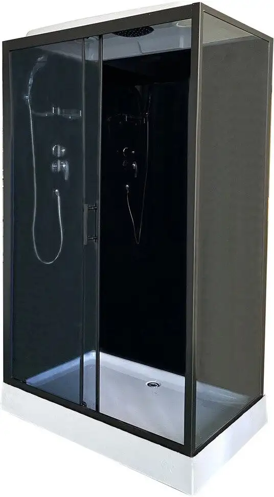 Душевая кабина Oda 8801TL полностью выполнена из закаленного стекла и алюминия, что делает её прочной и долговечной. Она устанавливается в угол, благодаря чему экономит место в ванной комнате. Кабина оснащена раздвижными дверьми из 4-миллиметрового стекла, которые легко открывать и закрывать. Внутри есть противоскользящее покрытие пола, чтобы обеспечить безопасность при использовании. В комплект входит низкий прямоугольный поддон с сифоном, что делает установку удобной. Кабина также имеет механический смеситель для комфортной регулировки температуры воды. Над поддоном расположился верхний тропический душ и ручной душ в комплекте для разнообразия водных процедур. Внутри есть полки для хранения средств гигиены. Общая высота кабины составляет 215 см, ширина — 80 см, а глубина — 120 см.