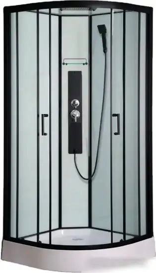 | Информация | Передние стекла — закаленные, прозрачные, толщиной 5 мм Задние стекла — закаленные, белые, толщиной 5 мм Центральная панель из закаленного стекла, толщиной 5мм, с вставкой из нержавеющей стали черного цвета со смесителем в цвет профиля и полкой из стекла Крыша — из закаленного стекла, толщиной 5мм Профиль — алюминиевый, черный Верхний душ из нержавеющей стали в цвет профиля Ручная душевая лейка в цвет профиля Ролики — двойные вверху, одинарные внизу Ручка — пластиковая, в цвет профиля Низкий поддон с бортиком, высотой 2 см Сифон анти-запах с черной крышкой Комплектация: Верхний душ Смеситель в цвет профиля Ручной душ Стеклянная полка Сифон — анти-запах |