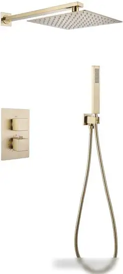Душевая система Abber Daheim AF8251G выполнена в элегантном матовом золотом цвете, что придаст вашей ванной комнате стильный вид. Она включает в себя удобный верхний душ диаметром 250 мм, который можно регулировать на шарнире, а также ручной душ с одним режимом работы. Монтаж осуществляется на стену, что позволяет экономить место в ванной. В комплект входит держатель для ручного душа, шланг и современный термостатический смеситель для точной настройки температуры. Благодаря удобным функциям, вы сможете легко управлять режимами и получать комфорт во время принятия душа. Эта система сочетает в себе практичность и красивый дизайн, делая вашу ванную более современной и уютной.