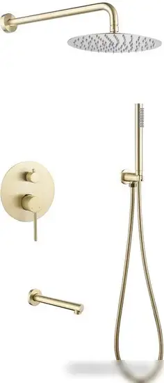 Душевая система Abber Emotion AF8817G в матовом золоте легко устанавливается на стену и подходит для монтажа с верхним душем. В комплект входит верхний круглый душ диаметром 250 мм, ручной душ с одним режимом, держатель для лейки и шланг для удобства приема душа. Благодаря металлическому вентилю и механическому смесителю вы можете точно регулировать поток воды и температуру. Верхний душ крепится на шарнире, что позволяет изменить направление струи для удобства. Ручной душ фиксированный, что обеспечивает стабильную работу. Общая длина и размеры системы позволяют легко разместить ее в любой ванной. Использование таких функций помогает создавать комфортные условия для каждого пользователя. Высококачественные материалы и простая конструкция обеспечивают долгий срок службы и надежность. Эта система отлично сочетает стиль и функциональность, делая каждое посещение душем приятным и удобным.