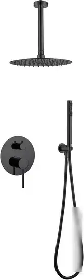 Душевая система Abber Emotion AF8821B в стильном черном матовом цвете отлично подходит для вашей ванной комнаты. Она состоит из настенного и потолочного монтажей, что обеспечивает удобство использования. В комплект входит верхний душ диаметром 250 мм, который можно поворачивать на шарнире, а также ручной душ с одним режимом для комфортного мытья. В конструкции есть держатель для лейки и шланг, а смеситель работает механически. Верхний душ фиксируется на шарнире, а его диаметр позволяет равномерно распределить поток воды. Размеры и форма делают систему удобной и практичной. Этот набор легко устанавливается и добавит современный стиль вашей ванной комнате.