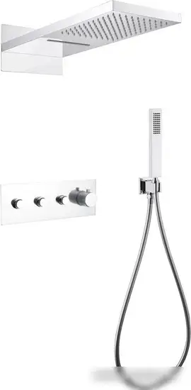 душевая система (с верхним душем), настенный монтаж, термостатический смеситель, верхний душ 230 мм, ручной душ