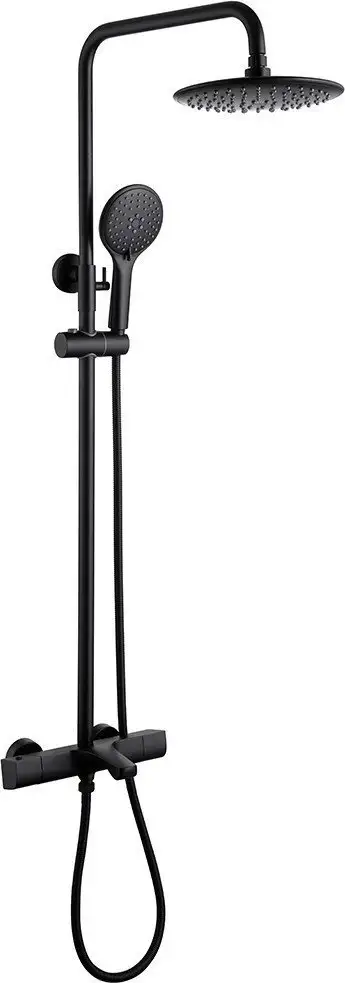 Душевая система Abber Thermostat AF8516BL — это удобное решение для вашей ванной комнаты. Она оснащена термостатическим смесителем, который поддерживает постоянную температуру воды, избегая резких перепадов. В комплект входит верхний душ с одним режимом и ручной душ с тремя режимами, которые можно менять по желанию. Верхний душ имеет диаметр 220 мм и фиксируется на штанге, а ручной душ регулируется по высоте для комфортного использования. В системе есть излив для ванны, что расширяет её возможности. Материалы — пластик и латунь, обеспечивают долговечность и надежность. Монтаж настенный упрощает установку и экономит пространство. Благодаря комплектации в набор входят шланг, держатель для лейки, и все необходимые элементы. Цвет устройства — черный, он отлично впишется в современный дизайн ванной комнаты. Эта система поможет вам быстро и удобно настроить комфортный поток воды и приятное освещение душа.