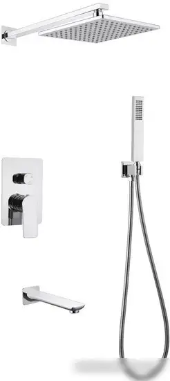 | Комплектация | верхний душ, ручной душ (лейка), держатель лейки, шланг, смеситель, излив для ванны |