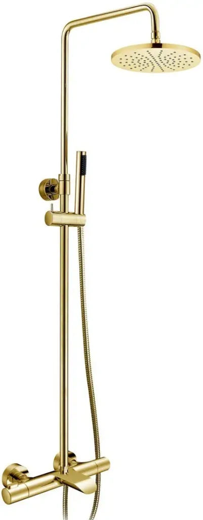 Душевая система Altrobagno Costanza предлагает комфортное и удобное использование. Она оснащена верхним душем на шарнире с одним режимом и диаметром 250 мм, что обеспечивает хорошие поток воды. Ручной душ с регулятором по высоте имеет один режим работы и позволяет легко регулировать поток для индивидуального комфорта. Термостатический смеситель поддерживает стабильную температуру воды, защищая от неожиданных перепадов. В систему входит излив для ванны, шланг длиной 1500 мм и держатель для лейки, что делает её универсальной. Материалы из латуни и металла гарантируют долговечность и надежность. Вся система монтируется на стену, что экономит место. Верхний душ выполнен в золотом цвете, добавляя стильный акцент в интерьер. Благодаря компактным размерам и удобной комплектации, эта система легко устанавливается и служит долго.