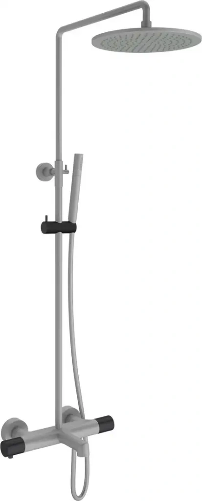 Душевая система Altrobagno Intento 030421 GrNe помогает удобно и легко принять душ. Она оснащена верхним душем с одним режимом и ручным душем, который можно регулировать по высоте. В конструкции использованы материалы — латунь для душа и пластик с резиной для шланга, что обеспечивает прочность и долговечность. Смеситель с термостатом позволяет точно настроить температуру воды и предотвращает неожиданные изменения. В комплект входит держатель для лейки, шланг длиной 1,5 метра и излив для ванны. Верхний душ диаметром 250 мм имеет вращающийся шарнир для удобства. Максимальный расход воды — 18 литров в минуту, что обеспечивает комфортное наполнение и использование. Благодаря монтажу на стену и регулируемой штанге, система легко адаптируется к различным размерам ванной. Ее простая установка и прочная конструкция гарантируют длительный срок службы.