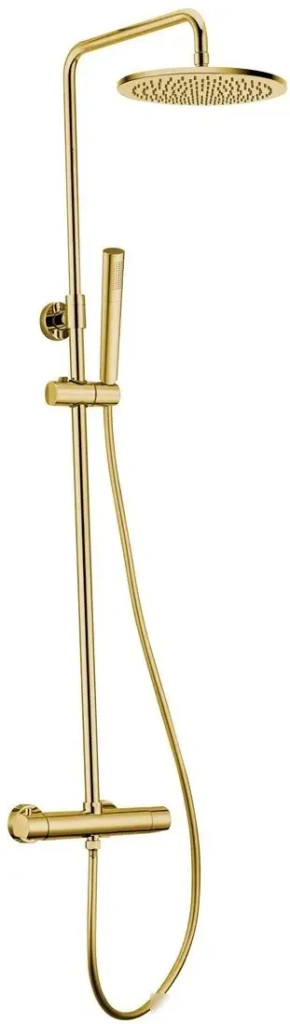 Душевая система Altrobagno Metropoli 030425 OrSp — это удобное и стильное решение для вашей ванной. Она оснащена верхним душем на шарнире с одним режимом, который обеспечивает широкий поток воды и легко регулируется. Штанга длиной 814 мм позволяет регулировать высоту ручного душа для комфортного использования. В комплект входит ручной душ с одним режимом, держатель, шланг длиной 1500 мм и термостатический смеситель, который поддерживает комфортную температуру воды. Верхний душ диаметром 250 мм выполнен из латуни и фиксируется на шарнире для удобства. Максимальный расход воды составляет 18 литров в минуту, а есть ограничение расхода и температуры воды для экономии и безопасности. Все элементы выполнены из качественных материалов — латунь, пластик и резина, что обеспечивает долговечность и надежность. Цвет системы — элегантный золотой, что добавит стиля вашей ванной комнате.