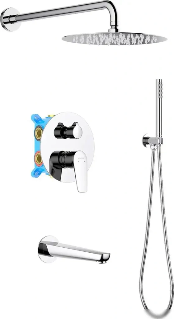 | Комплектация | верхний душ, ручной душ (лейка), держатель лейки, шланг, смеситель, излив для ванны |