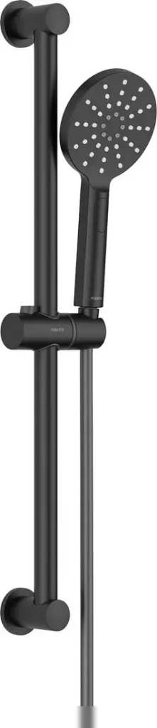 Душевой гарнитур Aquatek Оберон AQ2016MB имеет стильный черный матовый цвет и простую настенную установку. В комплект входит штанга, ручной душ с тремя режимами и держатель для удобства. Ручной душ выполнен из пластика с регулировкой по высоте, что обеспечивает комфортное использование для всей семьи. Шланг длиной 1500 мм позволяет свободно перемещать душ и мыть любую часть тела. Панель и ручной душ изготовлены из прочных материалов, что обеспечивает долговечность. Нет верхнего душа и смесителя, поэтому управление осуществляется через ручной душ. Простая конструкция и легкий вес — всего 840 г — делают монтаж быстрым и удобным. Такой гарнитур подойдет для тех, кто ценит функциональность и современный дизайн.