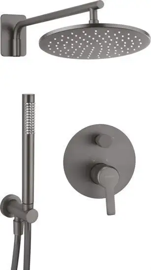 Душевая система Deante Arnika Titanium NAC D9QP создаёт комфорт в ванной благодаря скрытому монтажу и современному дизайну. В комплект входит верхний душ с круглой формой диаметром 250 мм и одним режимом, а также фиксированный ручной душ с режимом для удобного использования. Верхний душ обеспечивает равномерное распределение воды и приятное ощущение во время мытья. Размеры системы позволяют легко разместить её в стандартной ванной комнате, а вылет верхнего душа составляет 405 мм. Механический вентиль управляет режимами и температурой воды, делая использование проста и удобно. Материал шланга — прочный пластик/резина, что обеспечивает долговечность и лёгкую очистку. Цвет системы — серый, что легко сочетается с современным интерьером. Эта система подходит как для ежедневного использования, так и для тех, кто ценит качественные и надёжные решения.