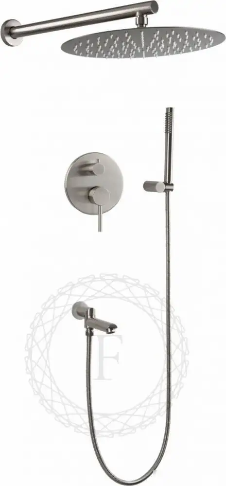 Душевая система Filarete Roun FL1020 выполнена из прочных материалов: латунь для душа и металл для шланга, что обеспечивает долговечность и надежность. Она имеет скрытую монтажную конструкцию, что делает установку аккуратной и незаметной. В комплект входит верхний душ с фиксированным круглым лейкой диаметром 300 мм и один режим струи, а также ручной душ с такой же формой и фиксированным режимом. Верхний душ установлен на 1,5-метровом шланге, который легко доставит воду туда, где нужно. Конструкция не включает смеситель или вентиль, что упрощает использование. Эта система отлично подойдет для тех, кто ценит простоту и прочность.