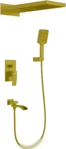 Душевая система Gappo G7107-73 оснащена верхним и ручным душем, оба с прямоугольной формы, что обеспечивает равномерный поток воды. Она сделана из латуни и металла, что гарантирует долгий срок службы и надежность. Монтаж происходит скрытым способом, скрывая все соединения за стеной. В комплект входит верхний душ, штанга, ручной душ, держатель, шланг и смеситель, что позволяет полностью оборудовать душевую зону. Механический вентиль легко управляет напором и температурой воды. Верхний душ фиксируется на штанге и обеспечивает удобное пользование, а ручной душ можно легко снять и помыться в труднодоступных местах. Материал и дизайн в золотом цвете создают стильный и современный вид. Благодаря материалам из металла и латуни, система устойчива к коррозии и долговечна.