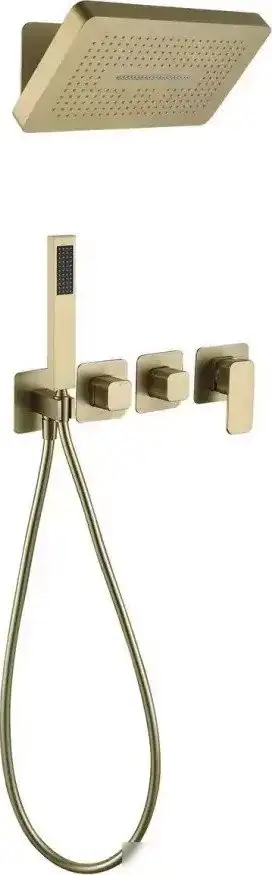 Душевая система Grocenberg GB5030 выполнена в элегантном золоте с матовым покрытием и сочетает в себе верхний и ручной души. Верхний душ имеет прямоугольную форму и регулируется в двух режимах, что обеспечивает комфортное водное давление. Ручной душ также прямоугольный и фиксированный, с одним режимом, и его диаметр составляет 40 мм. В комплект входит держатель для лейки и шланг длиной 1500 мм, что делает использование удобным. Подача воды осуществляется через скрытую монтажную систему и без смесителя или вентиля, что упрощает установку и уход. Материалы изделия — латунь, металл и пластик — обеспечивают долгий срок службы. Размеры системы — 520 мм в ширину и 600 мм в глубину, а вес — 13 кг. Эта душевая система легко вписывается в современный интерьер ванной комнаты. Благодаря качественным материалам и простоте установки она станет удобным решением для любой семьи.