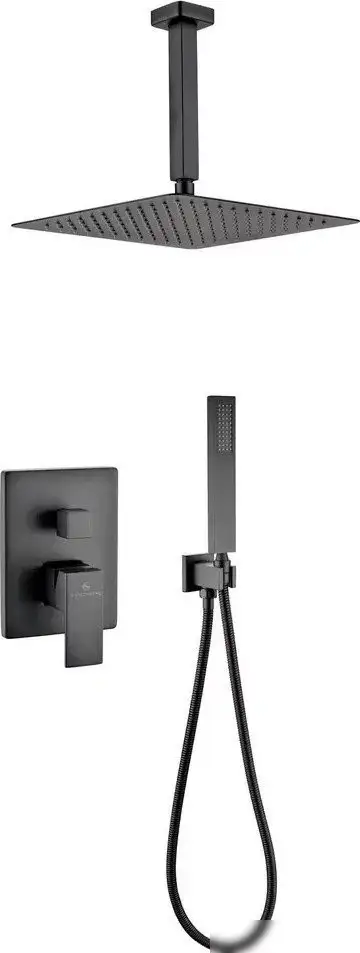 Душевая система Grocenberg GB5089BL-4 в современном черном матовом цвете отлично подойдет для любой ванной комнаты. Она включает верхний душ и ручной душ, оба в прямоугольной форме, что придает стильный вид. Верхний душ фиксируется на потолке и имеет диаметр 300 мм, предоставляя равномерное распределение воды. Ручной душ диаметром 35 мм удобен в использовании и подходит для точечной мойки. В комплект входит шланг длиной 1500 мм, что дает свободу движений. Конструкция выполнена из латуни, а шланг — из металла, что обеспечивает долговечность. Скрытый монтаж делает систему аккуратной и эстетичной. Душевая система не имеет встроенного смесителя или вентиля, поэтому управление осуществляется через отдельный смеситель.