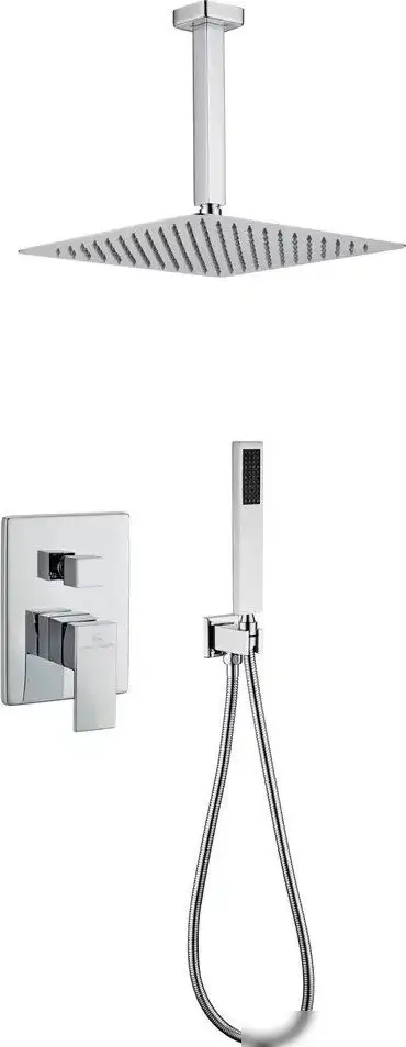 Душевая система Grocenberg GB5089CR-4 в хроме отлично впишется в современный интерьер ванной комнаты. Она состоит из верхнего фиксированного душа и ручного душа, оба имеют прямоугольную форму и просты в использовании. Верхний душ диаметром 300 мм обеспечивает равномерное распыление воды, а ручной душ диаметром 35 мм удобно направлять туда, куда нужно. Для монтажа используется скрытая система, что делает внешний вид более аккуратным. В комплект входит шланг длиной 1,5 метра, который легко manoeuvre. Все детали — латунь и металл, что обеспечивает долгий срок службы. У системы нет смесителя или вентиля, она работает с противоположных типом подключения. Легкая установка и современный дизайн делают её удобным выбором.