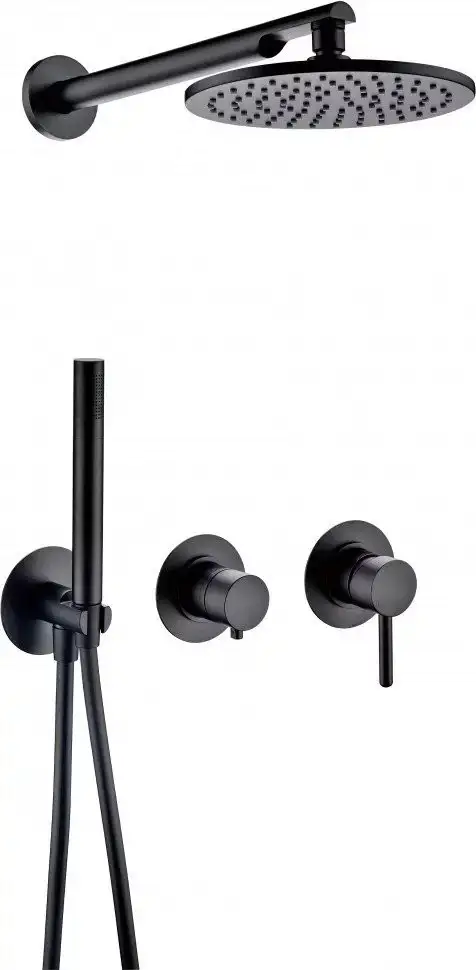 Душевая система Grocenberg GB5090 выполнена в стильном черном матовом цвете и сделана из прочных материалов: латунь для корпуса и металл для шланга. Она включает верхний душ с фиксированным круглым распылителем диаметром 200 мм и ручной душ с одним режимом и диаметром 30 мм. Устройство легко монтируется в скрытую систему, обеспечивая эстетичный внешний вид. Верхний душ фиксируется в одном положении, а ручной душ удобно держать в руке. Шланг длиной 1500 мм позволяет свободно перемещать душ для удобного очищения. Оптимальные размеры и вес системы делают её надежной и удобной в использовании. В системе отсутствует смеситель или вентиль, что упрощает управление. Она подойдет как для современных, так и для классических интерьеров. Улучшите свой душ с помощью стильной и функциональной системы Grocenberg GB5090.