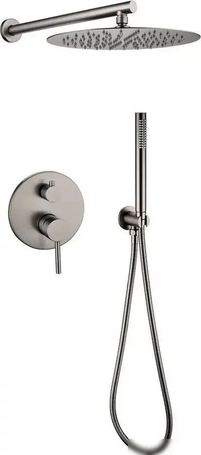 Душевая система Grocenberg GB5099BG-3 выполнена в сером цвете и имеет современный дизайн. Она включает верхний душ с фиксированным круглым лемом диаметром 300 мм, который обеспечивает равномерное распыление воды. Также в комплекте есть фиксированный ручной душ с диаметром 25 мм, позволяют легко настроить поток воды по необходимости. Монтаж системы происходит скрытым способом, что создает аккуратный внешний вид в ванной. Корпус изготовлен из латуни, а шланг — из прочного металла, что гарантирует долговечность. Благодаря диаметру верхнего душа и диаметру ручного душа, поток воды будет достаточно мощным и комфортным. Длина шланга составляет 1500 мм, что позволяет свободно пользоваться душем. Размеры системы: ширина 105 мм и глубина 390 мм, вес — 6 кг. Эта система подходит для тех, кто ищет стильное и надежное решение для ванной комнаты. Кроме того, отсутствие смесителя или вентиля делает ее простой в установке и использовании.