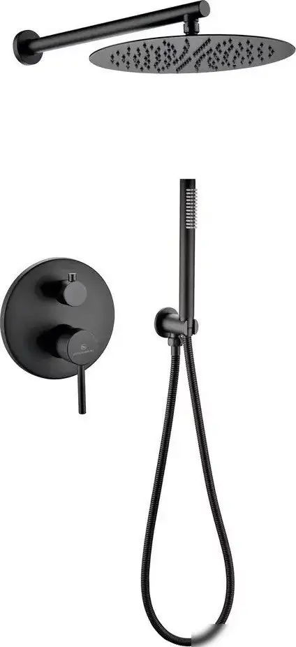 Душевая система Grocenberg GB5099BL-3 в черном матовом цвете сочетает стильный дизайн и практичность. Она включает верхний душ с диаметром 300 мм, который можно зафиксировать в удобном положении. Верхний и ручной души имеют круглую форму и просты в использовании. В комплекте идет длинный шланг длиной 1500 мм, что обеспечивает комфорт во время использования. Конструкция выполнена из прочных материалов, латунь для корпуса и металл для шланга, что гарантирует долговечность. Монтаж системы скрытый, что делает его незаметным и аккуратным. Обе души фиксированы, с одним режимом работы, что упрощает выбор воды. Благодаря качественным материалам, система легко обслуживается и долго служит. Эта модель идеально подойдет тем, кто ищет современную и надежную душевую систему. Идеальная фиксация и качество делают ее удобной и долговечной.