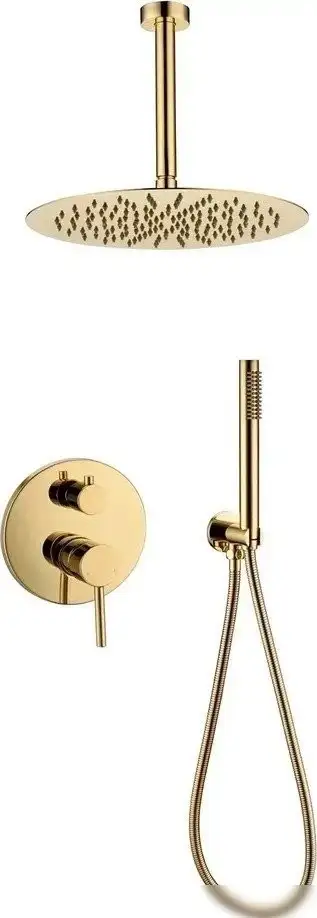 Душевая система Grocenberg GB5099GO-4 в золотом глянеце отлично подходит для современного и стильного ванного пространства. Она оснащена верхним и ручным душем, оба имеют круглую форму и диаметр 300 мм и 25 мм соответственно, что обеспечивает комфортное использование. Верхний душ фиксирован и имеет один режим работы, а ручной душ также фиксирован и с одним режимом, что упрощает настройку потока воды. Материалы конструкции – латунь, пластик и металл, которые делают систему надежной и долговечной. Монтаж скрытый делает установку аккуратной и эстетичной. В комплект входит шланг длиной 1500 мм, позволяющий удобно мыться. Эта система лишена смесителя/вентили, что снижает риск протечек и облегчает обслуживание.