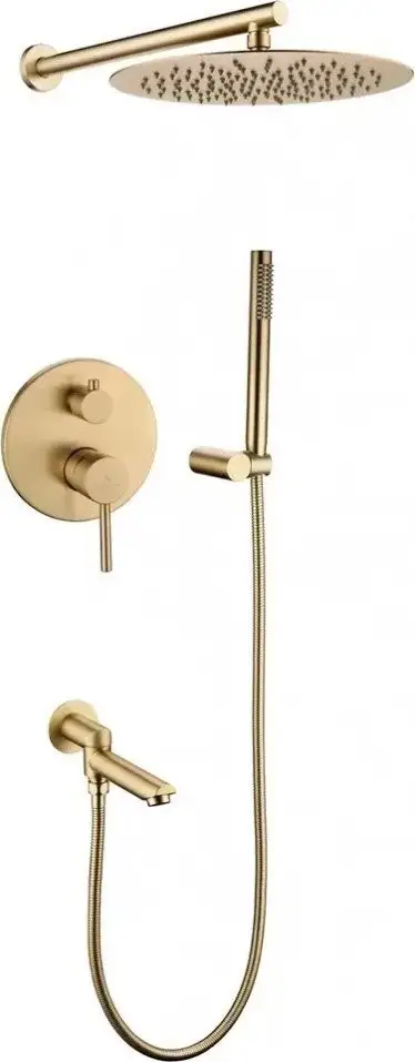 Душевая система Grocenberg GB5099MG-1 выполнена в элегантном золотом матовом цвете. Она включает верхний и ручной души, оба с круглыми формами и диаметром 300 мм и 25 мм соответственно, что обеспечивает равномерное распределение воды. Верхний душ фиксируется и имеет один режим работы, а ручной душ удобно фиксирован и также обладает одним режимом. В комплект входит металлический шланг длиной 150 мм для комфортных водных процедур. Монтаж системы скрытый, что придает ей аккуратный и современный вид. Устройство изготовлено из латуни и металла, что гарантирует долговечность и надежность. Отсутствие смесителя и вентилей делает эксплуатацию максимально простой и понятной. Размеры и вес системы позволяют легко ее установить в любой ванной комнате, создавая уют и комфорт. Это надежное решение для тех, кто ценит стиль, качество и удобство.