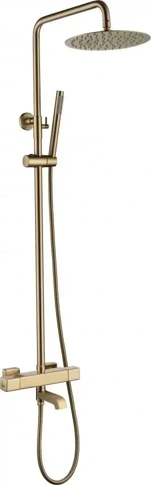 Душевая система Grocenberg GB7005 имеет современный дизайн в золоте матового цвета и выполнена из высококачественных материалов: латунь и металл. Она оснащена термостатическим смесителем, который обеспечивает постоянную температуру воды и защищает от перепадов. В комплект входит верхний душ диаметром 250 мм с одним режимом, а также ручной душ диаметром 85 мм с тремя режимами, что позволяет выбрать оптимальный поток воды. Благодаря фиксированным душам и прочной штанге длиной 1340 мм, вы легко настроите систему под свои нужды. Надежный шланг длиной 1500 мм обеспечивает свободу движений при использовании. Монтаж настенный позволяет быстро установить систему без дополнительных усилий. Встроенное ограничение температуры помогает избежать ожогов и повысить комфорт. Душевая система весит 7 кг и легко укладывается в стандартное пространство ванной комнаты. Она сочетает практичность, надежность и современный стиль для комфортного пользования.