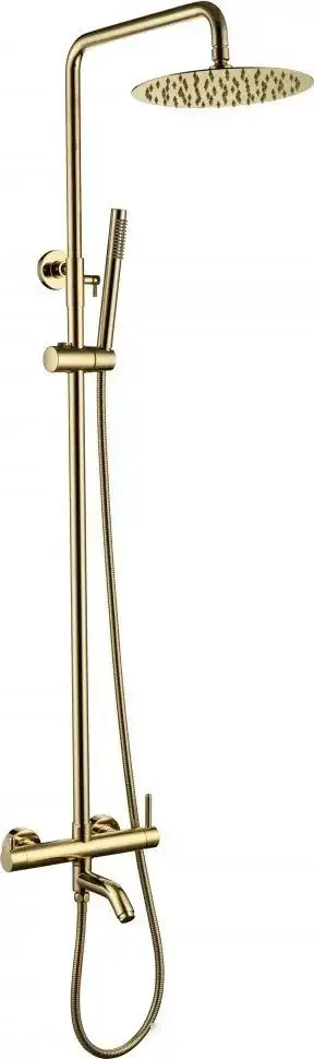 Душевая система Grocenberg GB7099 выполнена в элегантном золотом цвете с глянцевым покрытием, идеально подходящем для современного интерьера. Ее конструкция включает верхний и ручной душ, оба с округлой формой и диаметром 25 и 250 мм соответственно, что обеспечивает комфортное принятие душа. Верхний душ фиксирован и позволяет быстро активировать его режим, а ручной душ удобно использовать для точечной очистки тела. Система оборудована металлическим шлангом и латунной головкой, что гарантирует прочность и долговечность. Штанга длиной 1500 мм позволяет легко регулировать высоту верхнего душа. В комплект входит шланг длиной 1500 мм для свободных движений. Монтаж системы осуществляется на стену, что занимает минимальное пространство. Конструкция не включает смеситель или вентиль, а излив добавляет функциональность. Благодаря качественным материалам, эта система служит долго и сохраняет привлекательный внешний вид.