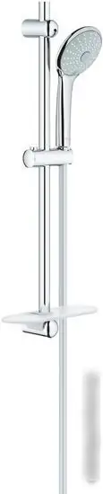 Душевой гарнитур Grohe Euphoria 110 Massage в хроме легко устанавливается на стену. Он включает ручной душ с тремя режимами и регулируется по высоте, что позволяет выбрать оптимальный поток воды. Расход воды составляет 9.5 л/мин, благодаря чему экономится вода и энергия. Шланг выполнен из пластика и резины, длиной 1750 мм, что обеспечивает свободу движений во время использования. Диаметр ручного душа 110 мм и его форма — круглая, что удобно при мытье. В конструкции есть полочка для мыла и ограничение расхода воды для экономии. Гарнитур не содержит верхний душ и смеситель, он подключается к вашей системе водоснабжения. Надёжная сборка и стильный хромовый внешний вид делают его долговечным и современным. Компактные размеры и продуманный дизайн создают комфорт и удобство в ванной комнате.