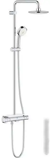 Душевая система Grohe Euphoria System 190 – это удобное решение для вашей ванной комнаты. Она устанавливается на стену и оснащена термостатическим смесителем, который поддерживает постоянную температуру воды. В набор входит круглый верхний душ диаметром 190 мм с одним режимом, а также ручной душ диаметром 100 мм с тремя режимами для комфортного приёма душа. Верхний душ расположен на шарнире, что позволяет легко регулировать его положение, а длинный шланг и штанга обеспечивают удобство использования. Эта система имеет современный хромированный дизайн, отлично впишется в любой интерьер. Благодаря простому управлению и надёжной конструкции она подарит вам приятные моменты во время водных процедур. В дополнение, имеет длину шланга 1,75 метра и вылет верхнего душа составляет 412 мм, что обеспечивает свободу движений.