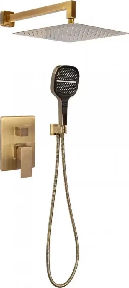 Душевая система Hansberge H6070 в бронзовом цвете отлично подойдет для вашей ванной комнаты. Она включает верхний и ручной душ, оба с четырьмя режимами, что позволяет выбрать комфортное водяное давление и струю. Верхний душ имеет прямоугольную форму и диаметр 300 мм, а ручной — 130 мм, оба изготовлены из прочных материалов. Шланг длиной 1500 мм обеспечивает хорошую свободу движений. Вся система монтируется скрытым способом, что создает аккуратный внешний вид. Материалы — латунь и металл, обеспечивают долговечность и надежность. Простая установка и отсутствие смесителя или вентиля позволяют легко использовать систему. Комплектация включает верхний и ручной души, а также шланг. Вес системы — 6 кг, она легко фиксируется на стене. Это практичный выбор для тех, кто ценит качество и удобство.