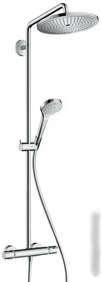 Душевая система Hansgrohe Croma Select 280 Air отлично подходит для удобного и комфортного приема душа. Она устанавливается на стену и имеет термостатический смеситель, который поддерживает постоянную температуру воды. Верхний душ имеет круглую форму с диаметром 280 мм и регулируется на шарнире, чтобы удобно направлять поток воды. Его можно включать одним нажатием и пользоваться одним режимом. Ручной душ с диаметром 110 мм предлагает три режима для приятного и разнообразного массажа. Он легко регулируется по высоте и подключается длинным шлангом длиной 1600 мм, что облегчает использование. Устройство не ограничивает расход воды, поэтому расход составляет 16 л/мин, что обеспечивает хорошую напорность. Благодаря компактным размерам и классическому хромированному дизайну оно подходит к любому интерьеру ванной комнаты. Эта система создаст комфортные условия для душа без лишних функций, которые сюда не входят.