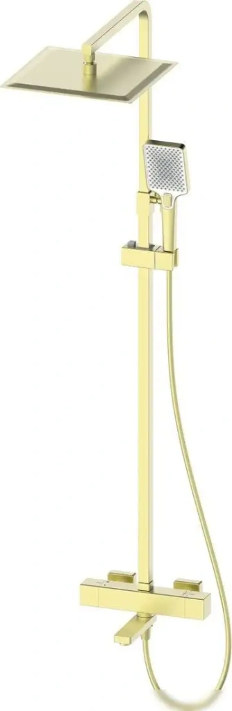 Душевая система Oliveeka 739901 в золотом цвете идеально подходит для тех, кто ценит стиль и качество. Она включает в себя верхний душ с прямоугольной формой и диаметром 300 мм, который фиксируется и легко регулируется для удобства. В комплект входит ручной душ с регулировкой по высоте и диаметром 200 мм, а также шланг длиной 1500 мм, что позволяет выбрать комфортный режим мытья. Вся конструкция выполнена из качественной латуни, стали и металла, чтобы обеспечить долговечность и устойчивость. Душевая система монтируется на стойке, а её размеры позволяют свободно пользоваться всеми функциями. Она не содержит смесителя или вентиля, что упрощает обслуживание и управление. Штанга длиной 1500 мм позволяет легко настроить высоту душа под ваши нужды. Благодаря современному дизайну и практичным функциям, эта система сделает вашу ванную более комфортной. Чтобы понять, какие функции включает устройство, ознакомьтесь с списком особенностей ниже.