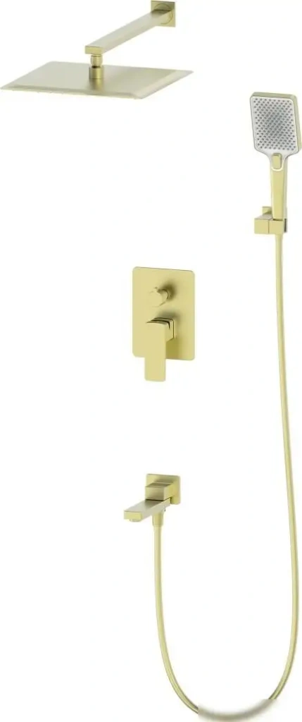 Душевой гарнитур Oliveeka 939003 выполнен в элегантном золотом цвете и предназначен для настенного монтажа. Он состоит из металлической лейки, держателя и шланга длиной 1500 мм, что обеспечивает комфортное использование. Гарнитур не включает верхний душ, он оснащён механическим смесителем и вентилём для удобства регулировки воды. На передней части находится фиксированный прямоугольный верхний душ диаметром 300 мм, а также регулируемый ручной душ диаметром 70 мм, который можно настраивать по высоте. Благодаря простому монтажу и качественным материалам, этот гарнитур легко устанавливается и служит долго. Он хорошо подойдет для тех, кто ищет функциональный и стильный душевой комплект.