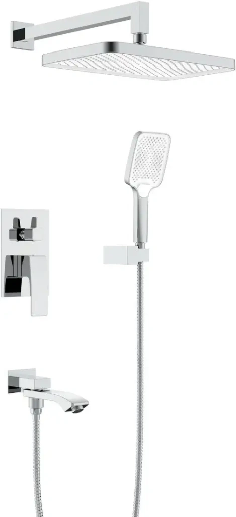 | Комплектация | верхний душ, ручной душ (лейка), держатель лейки, шланг, смеситель, излив для ванны |