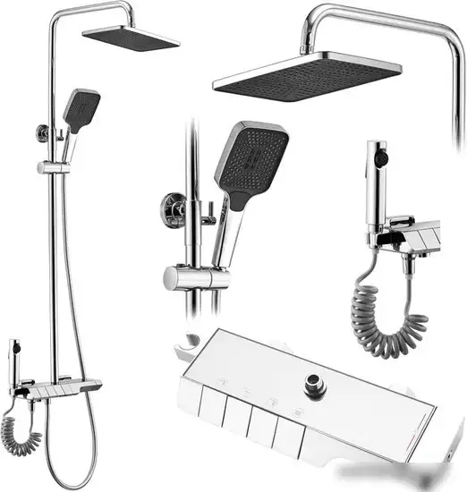 | Комплектация | верхний душ, штанга, ручной душ (лейка), держатель лейки, шланг, смеситель, каскадный излив, гигиенический душ (лейка) |