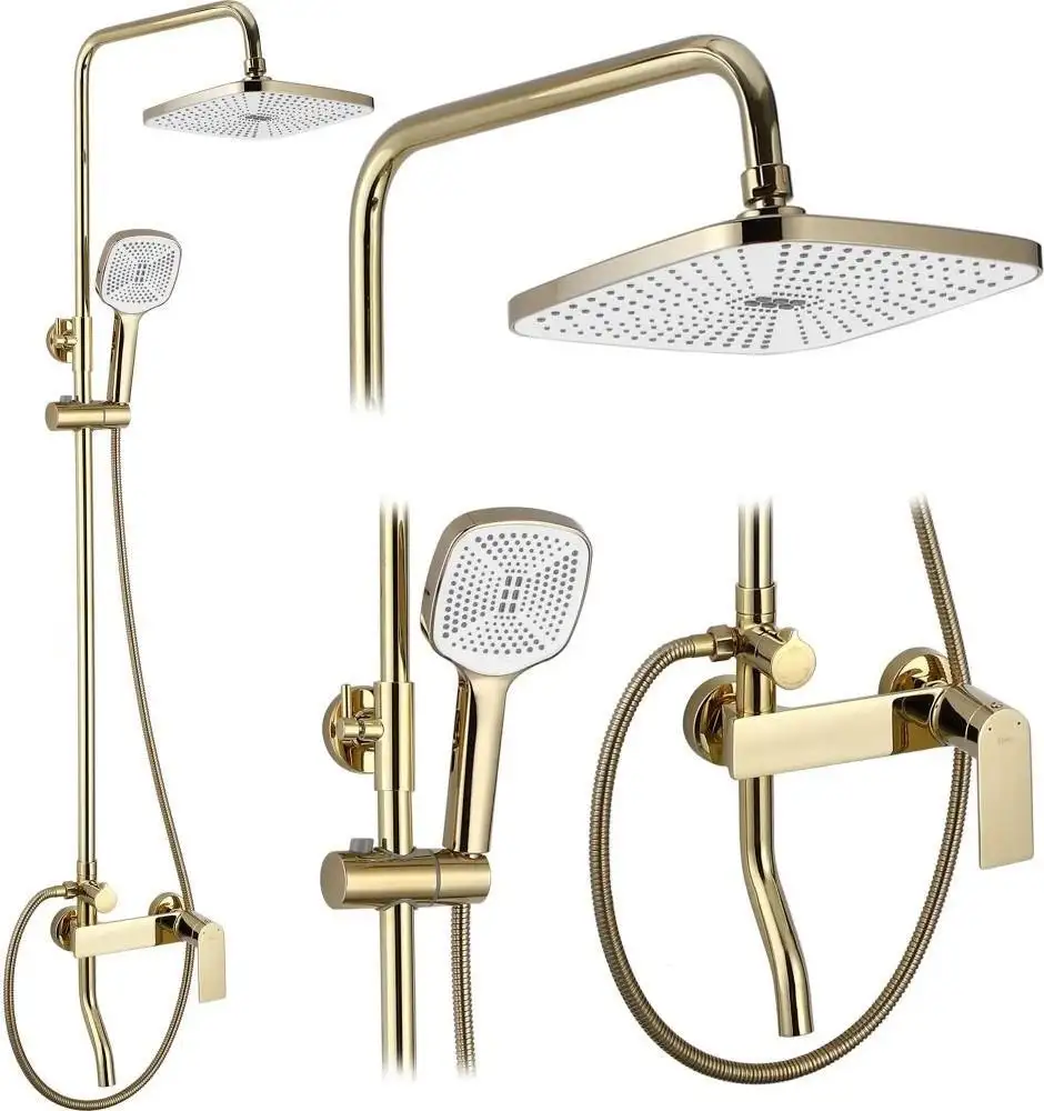 Душевая система Rea Storm REA-P9530 сочетает в себе стильный дизайн и удобство использования. Она включает верхний и ручной душ, оба фиксированные и прямоугольной формы, что обеспечивает равномерное распределение воды. Для комфортной эксплуатации система снабжена металлическим шлангом и прочной латунной конструкцией, что гарантирует долговечность. Установка осуществляется на стену, а длина системы составляет 1440 мм, что удобно для различных ванных комнат. В комплект входит держатель лейки, смеситель и излив для ванны, что расширяет функционал. Механический вентиль управляет потоками воды, позволяя быстро регулировать температуру и напор. Материалы из пластика и металла делают систему лёгкой и надёжной. Ее привлекательный глянцевый золотой цвет добавит роскоши интерьеру. Эта система подойдет тем, кто ищет простое и надежное решение для комфортного душа.