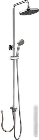 Душевая система РМС SL80-003-5 выполнена из прочного металла и имеет стильный хромированный цвет. Она предназначена для настенного монтажа и включает в себя верхний и ручной души, оба круглой формы. Верхний душ регулируется на шарнире, что позволяет изменять его положение для удобства. У системы один режим работы верхнего душа, что делает его простым в использовании. Ручной душ можно регулировать по высоте, обеспечивая комфортный душ независимо от роста пользователя. В комплект входит металлический шланг, который прослужит долго и не потеряет внешний вид. Система не оснащена смесителем, мылницей или полочками, что делает её минималистичной и удобной в уборке. Она подходит для тех, кто ищет простое и функциональное решение для ванной комнаты.