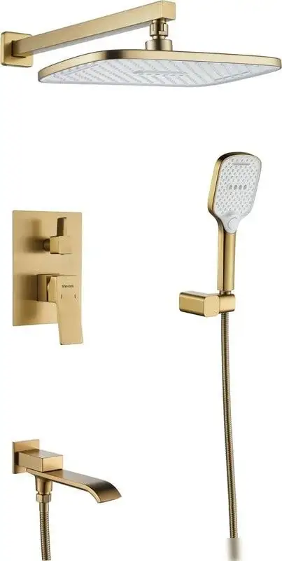 Душевая система Shevanik S4035G сочетает стильный дизайн с удобством пользования. Она выполнена из пластика, латуни и металла, что обеспечивает долговечность и надежность. В комплект входит верхний душ с тремя режимами и каскадным эффектом, а также ручной душ с тремя режимами и фиксированным положением. Верхний душ имеет прямоугольную форму с диаметром 320 мм и установлен на поворотном кронштейне, что позволяет регулировать направление воды. Ручной душ подключается к шлангу длиной 1500 мм, что дает возможность мыться в удобных позах. Благодаря нескольким режимам и каскадному эффекту система создаёт комфортную фоновую и точечную воду. Настенный монтаж прост и предполагает быстрый монтаж и демонтаж. Высокое качество материалов гарантирует долгий срок службы системы. В стильном золотом цвете она отлично дополнит современный интерьер ванной комнаты.