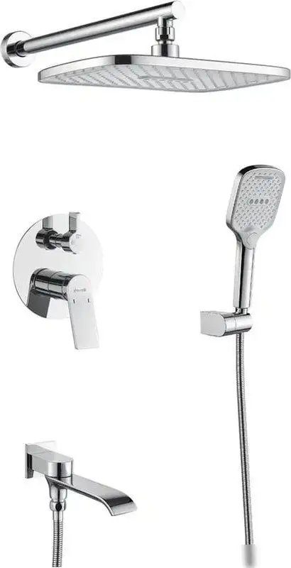 | Комплектация | верхний душ, ручной душ (лейка), шланг, каскадный излив |