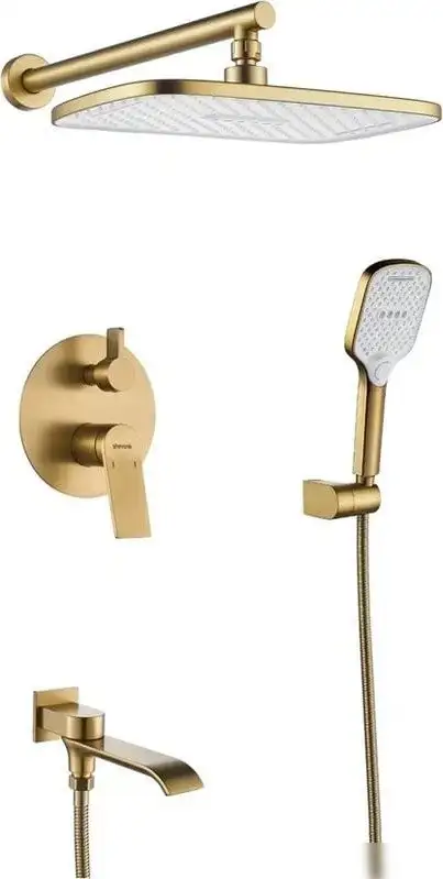 Душевая система Shevanik S4135G создана для удобства и комфорта в ванной. Она оснащена верхним душем с тремя режимами, который легко регулируется благодаря шарниру. Размер верхнего душа — 320 мм, он имеет квадратную форму и обеспечивает равномерное покрытие водой. В комплект входит ручной душ с тремя режимами, который фиксируется для удобства использования. Верхний душ можно наклонять и поворачивать, а длина шланга составляет 1500 мм, что позволяет легко мыться и мыть другие части тела. Используемые материалы — пластик и латунь, а шланг — металл, что гарантирует долгий срок службы. Конструкция простая в монтаже на стену, а каскадный излив добавляет стиль и функциональность. Такой набор подойдет тем, кто ценит практичность и современный дизайн в ванной.